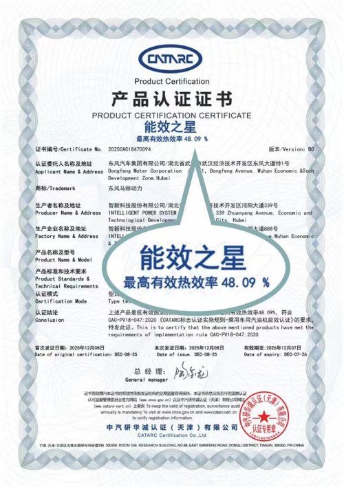 2025年岁末,中国汽车产业科技创新版图再添浓墨重彩的一笔。12月8日,东风汽车自研全新马赫1.5T混动发动机凭借48.09%的最高有效热效率,斩获“能效之星” 认证,成为行业首款热效率认证突破48%的混动汽油发动机。此前不久,在北京举行的2025世界十佳动力系统评价活动中,东风商用车龙擎DA12挡变速箱更荣膺“第九届世界十佳变速器”殊荣。两大核心动力产品接连斩获行业权威认证,不仅展现出东风汽车在自主动力技术领域的全面领先实力,更成为东风汽车始终以科技创新驱动产业升级的生动缩影。